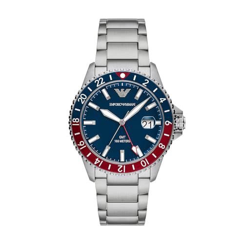 ساعة ارماني الطوق باللون البيبسي ازرق واحمر لون المينا اسود ارقام شخوط الطوق فر