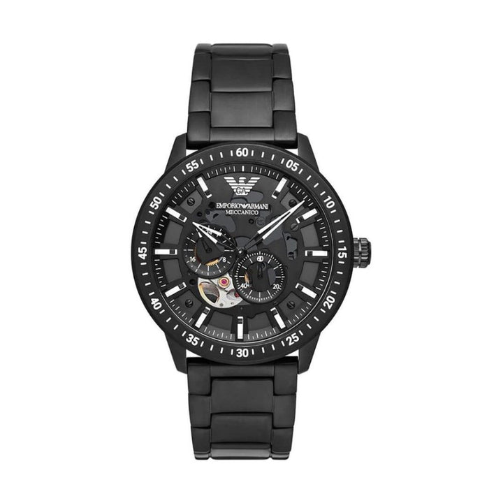 ساعة ارماني اوتوماتيك اسكيلتون اوبن باك كيس ارقام شخوط فل بلاك المينا اسود